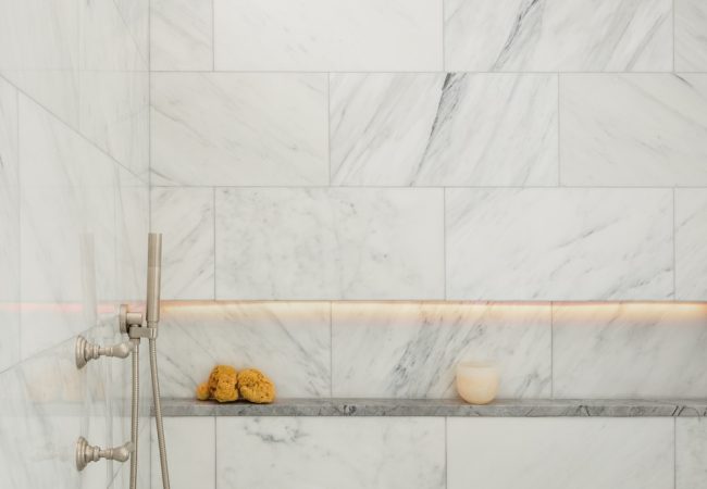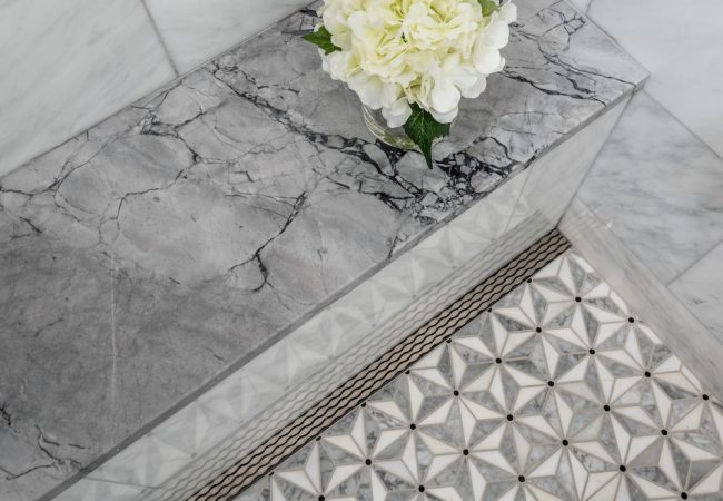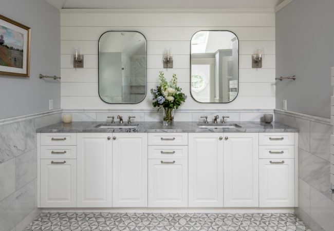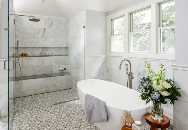 A dated primary bathroom in need of ventilation, insulation, and an extensive facelift was the focus of this Sherborn bathroom remodel. Located above the garage, the bathroom faced multiple challenges, including inadequate ventilation and insulation, making it too warm in the summer and too cold in the winter. Additionally, the space lacked sufficient storage for towels and other necessary bathroom items. Using the design-build methodology, our team addressed the insulation and ventilation issues while also adding much-needed storage, all within a polished and stunning bathroom aesthetic.